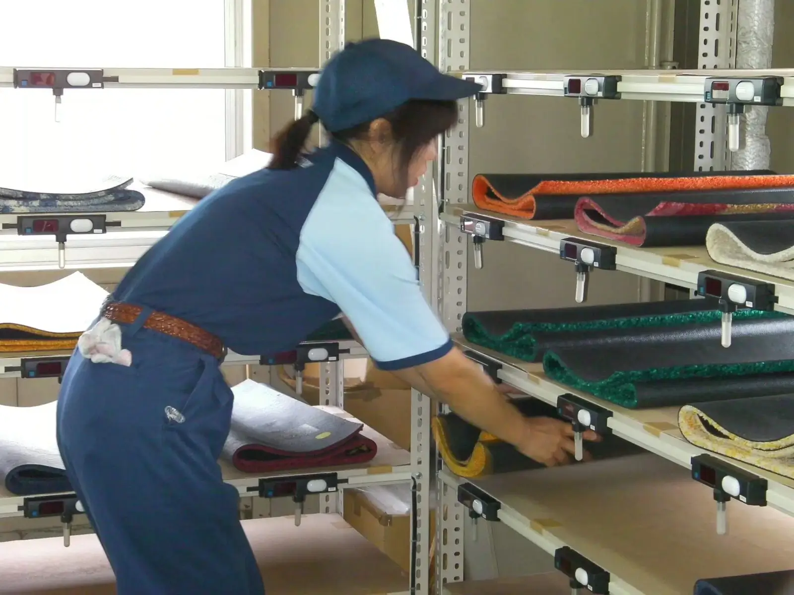 Several different types of mats are batched before shipping to each customer.